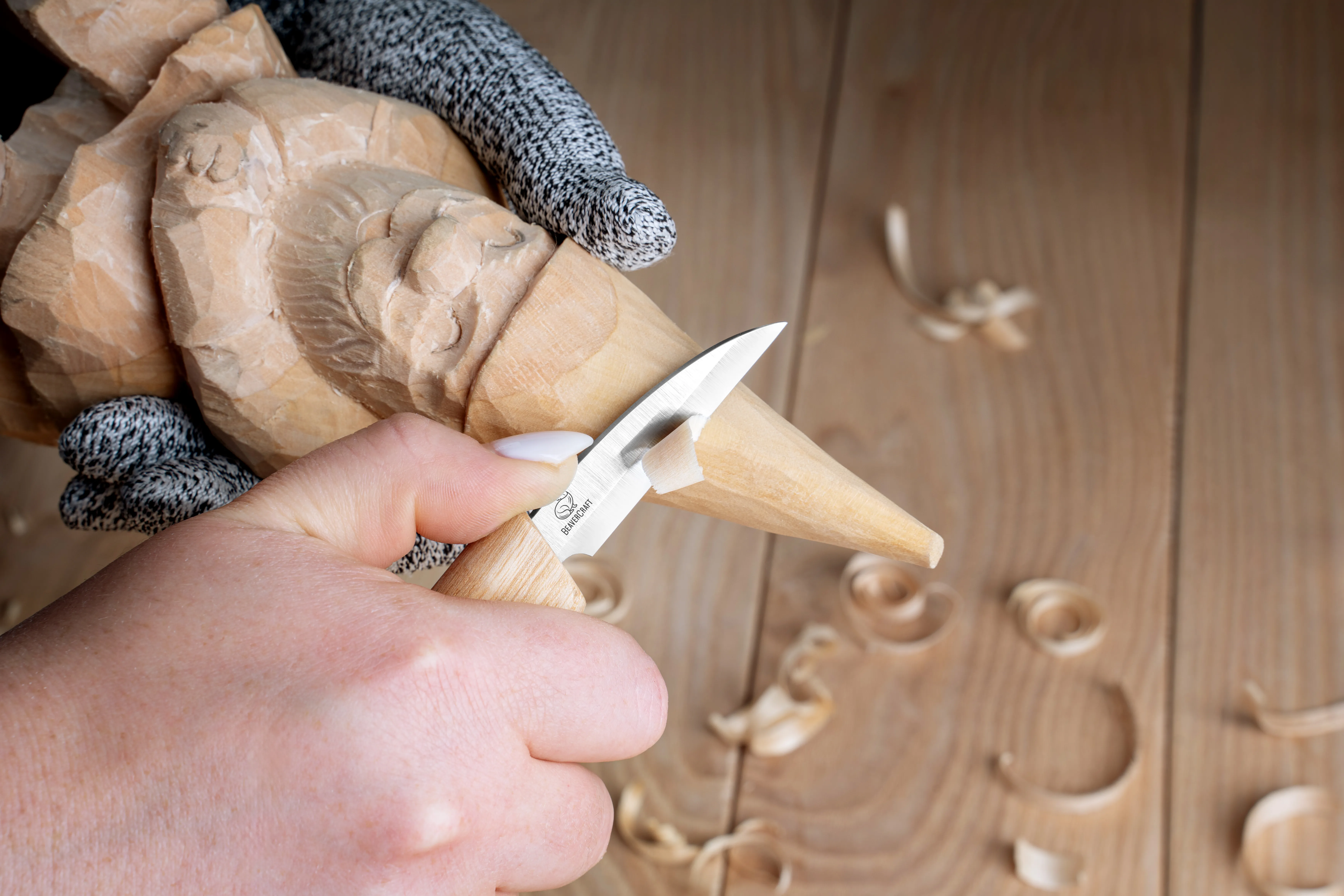 El cuchillo de desbaste cuenta con una hoja recta para eliminar material grueso y una punta redondeada y resistente. Este cuchillo de corte es ideal para tallar en general, especialmente para principiantes. El cuchillo de tallado de madera BeaverCraft Supersharp permite cortar tanto maderas blandas como duras.
