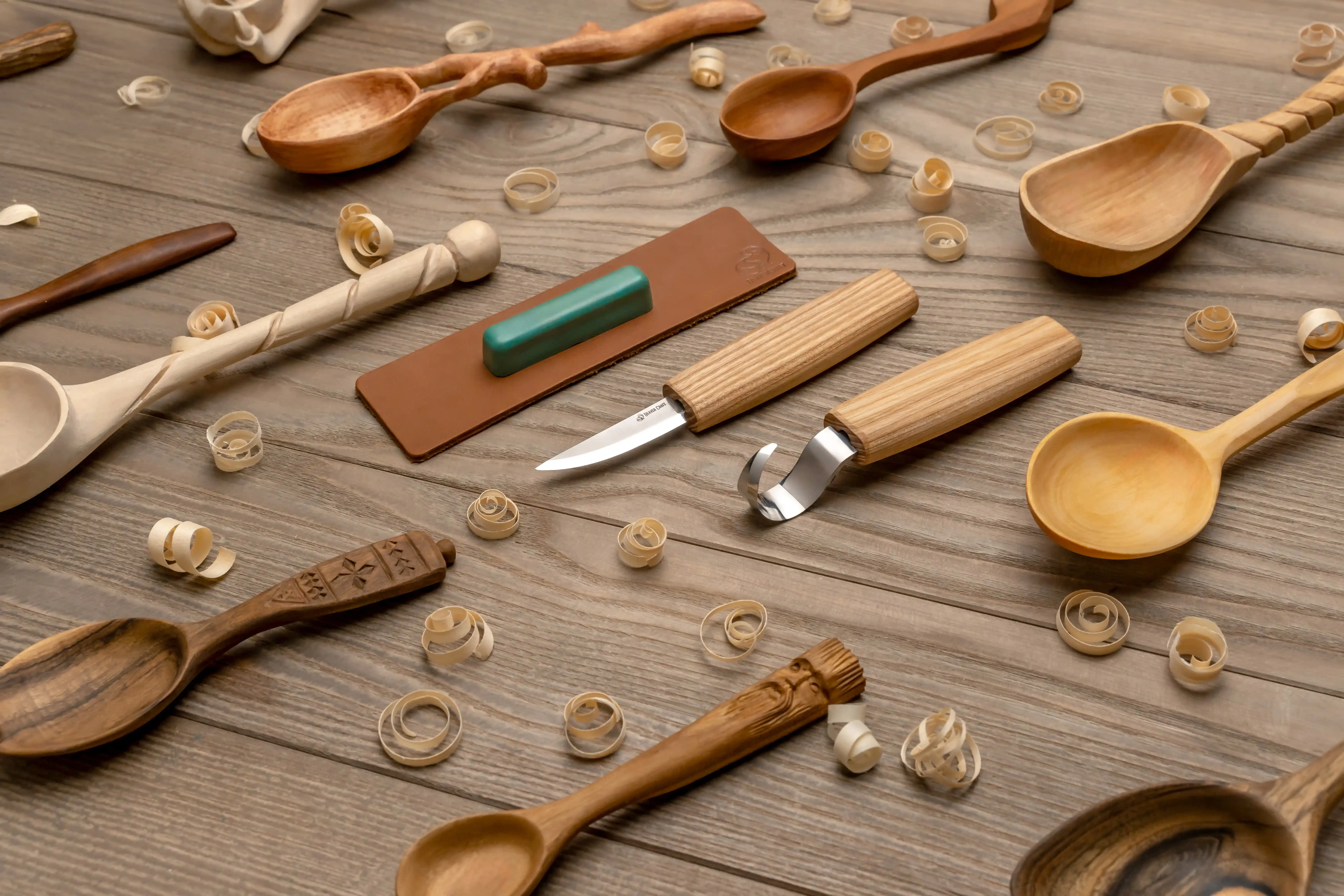 El cuchillo para tallar cucharas es un excelente utensilio en forma de U para realizar cortes detallados, cuencos y cucharas redondas, kuksa o bordes redondeados que añaden un toque especial a tu proyecto. El cuchillo para tallar cucharas tiene una curvatura pronunciada, un filo que llega hasta la punta y un lomo plano para empujar con los pulgares.