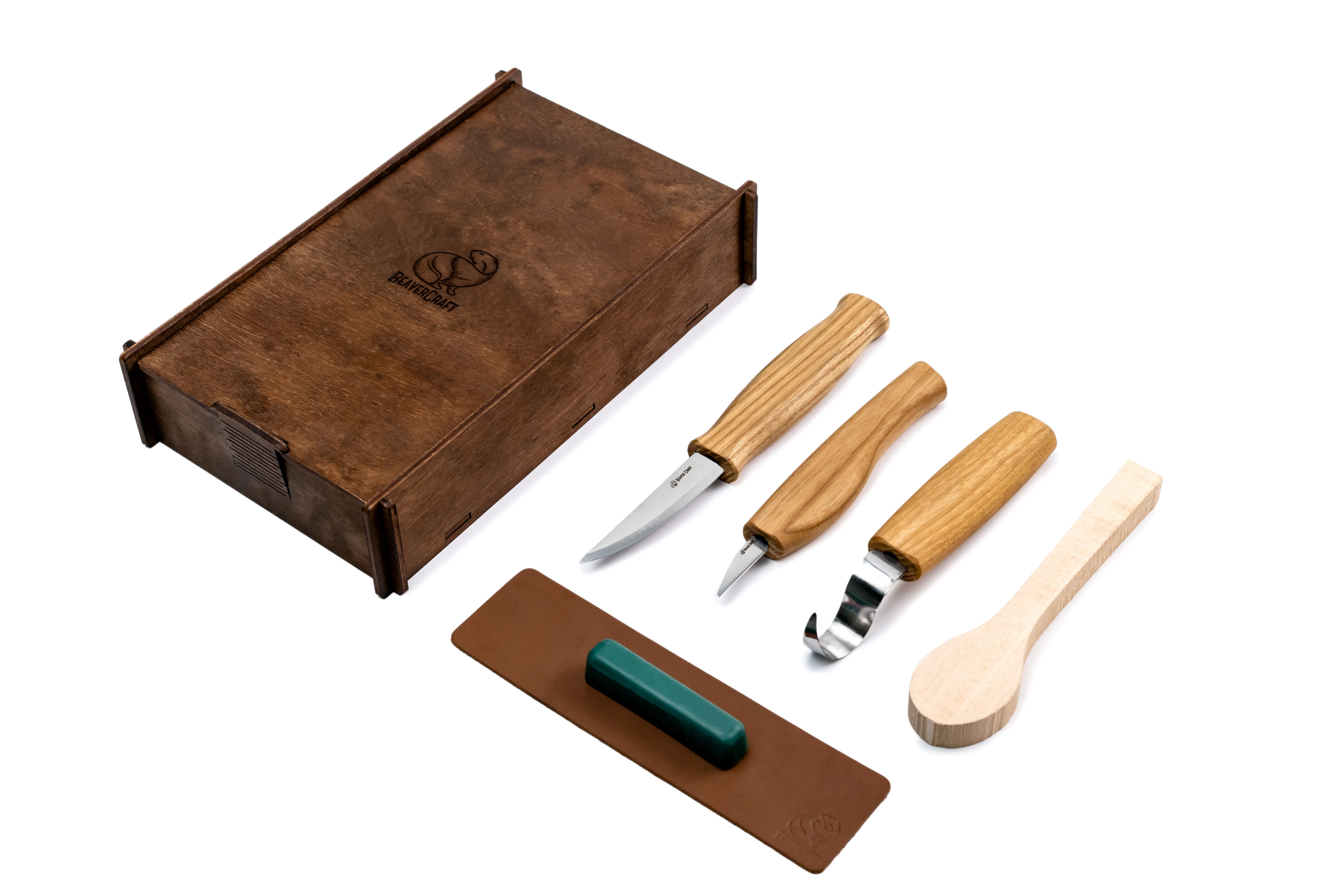 Faca para entalhar colheres de 25 mm • Comprimento total: 155 mm (6,10") • Diâmetro da lâmina: 25 mm (1") • Comprimento do cabo: 105 mm (4,13") • Material do cabo: Madeira de freixo
