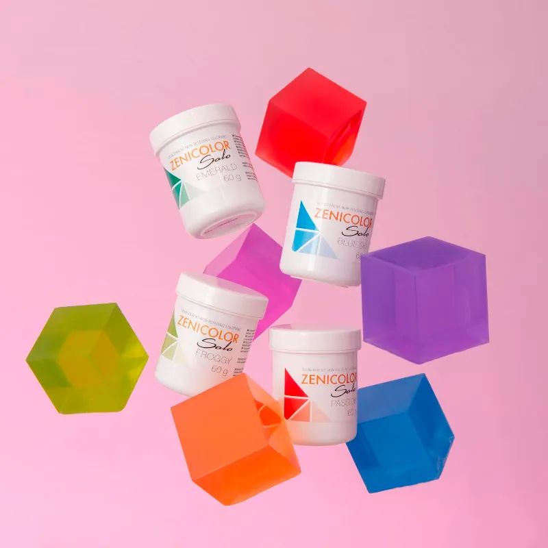 ZENICOLOR Solo é uma série de corantes transparentes inovadores e de cor firme, prontos para uso em sabonetes.